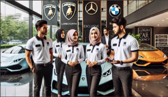 Sebuah agensi pemasaran kenderaan mewah perlu melambangkan eksklusiviti, keyakinan, dan kemewahan dalam setiap aspek, termasuk pakaian staf mereka.